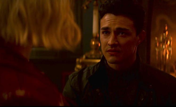 After Lucifer Morningstar returns to world, he informs Sabrina that she must open the Gates of Hell and then sit alongside him as the Queen of Hell during the Apocalypse. Of course, Sabrina refuses him, and that's when he reveals the twisted truth about Nick Scratch. He summons Nick into the room, and Nick admits that he only got close to Sabrina because the Dark Lord commanded him to. As Sabrina breaks down in tears, Nick protests that although their relationship began because of the Dark Lord, he grew to truly love her. But it's too late, and Sabrina relents that she could never trust Nick again.