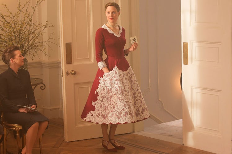 Looking at the facts of Charles James' life, he was viewed as eccentric much like Woodcock is here. (For instance, he was so displeased once by how a model walked, he put on the gown and did the show instead.) And James' symbiotic relationship with his wife, Nancy Lee Gregory, is akin to the one Woodcock has here with Alma (Vicky Krieps).