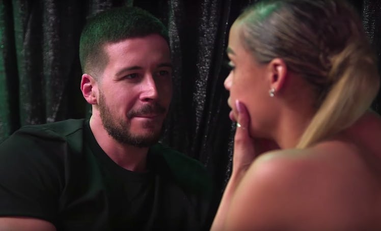 While the rest of the Jersey Shore cast has found love after the show, Vinny and DJ Pauly D were always too busy partying to ever settle down with someone. The best bros are trying to change that now, though, with their new dating show Double Shot at Love with DJ Pauly D and Vinny. Although the series just premiered on Thursday, the whole season has already been filmed, which means Vinny may or may not currently be dating the winner of the show. So, is Vinny single after Double Shot at Love, or did he really find the girl of his dreams? Let's see what we can dig up.