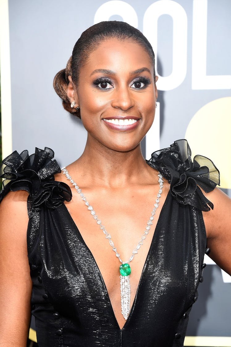 As the 2018 Golden Globes red carpet began, I couldn't help but get excited over all of the amazing looks on the red carpet. Besides the beautiful black dresses, Issa Rae's 2018 Golden Globes dress is far from Insecure. That emerald necklace she is wearing is to die for!