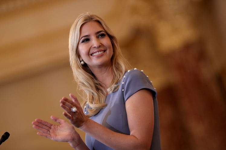 Per Fortune, Trump's self-titled fashion line is in a trust, and she's not actively heading the day-to-day operations of the company. (Relatives of her husband, Jared Kushner, are currently running the show.) Still, her father's presidency seems to have help set records for her business; she made $12.7 million between early 2016 and July 2017, with about half of that coming from her clothing brand. (The rest of the revenue came from her stakes and salaries in the Trump Organization, Trump International Hotel, and other real estate companies.) Together, thanks to Kushner's updated financial disclosures, The New York Times reports, the couple raked in more than $212 million in that same time with a net worth of $761 million.