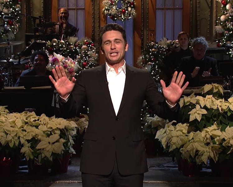 They say the fifth time's a charm — that's when you get a jacket — but your fourth time hosting SNL, well... that's when you get schooled by your BFFs. You have to earn that jacket, folks, and it looks like our Dec. 9 host learned that the hard way. James Franco's SNL monologue was completely ruined by his famous crew, and it was so hilariously satisfying to watch.