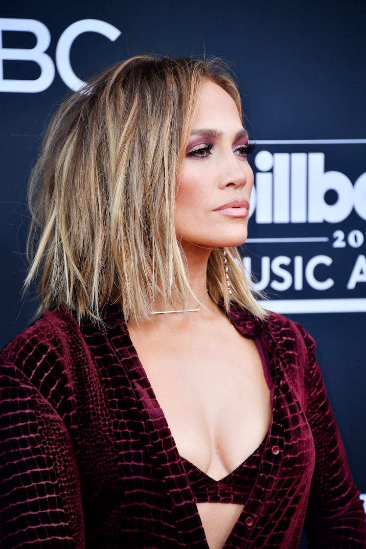 Forget monopoly money, when you're an award-winning singer, dancer, TV personality, beauty entrepreneur, and all around boss b*itch, you can literally afford to sacrifice money for the sake of your #lewk. And that's exactly what J.Lo did. At the 2018 Billboard Music Awards, Lopez showed up on the red carpet wearing a maroon Roberto Cavalli ensemble (which included a velour, crocodile-embossed bra) and over-the-knee Casadei boots. The most remarkable part of the look, however, wasn't even noticeable at first glance.