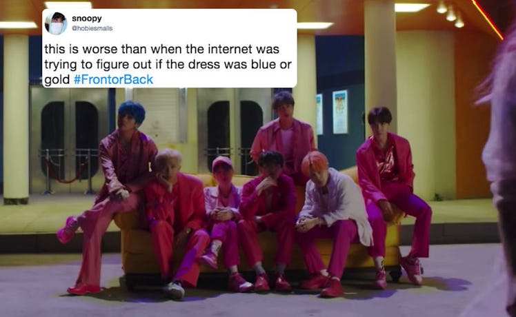 Fans of the group are straight-up torn over this. Some are convinced he's facing the back, then there are plenty who have pointed out that his shoes seem to be facing forward. My best guess is that Jimin turns around to face the front in the video, but the lighting/shadows on his face when he turns make it seem like we're seeing the back of his head, and not the front. But consider me #TeamFront.