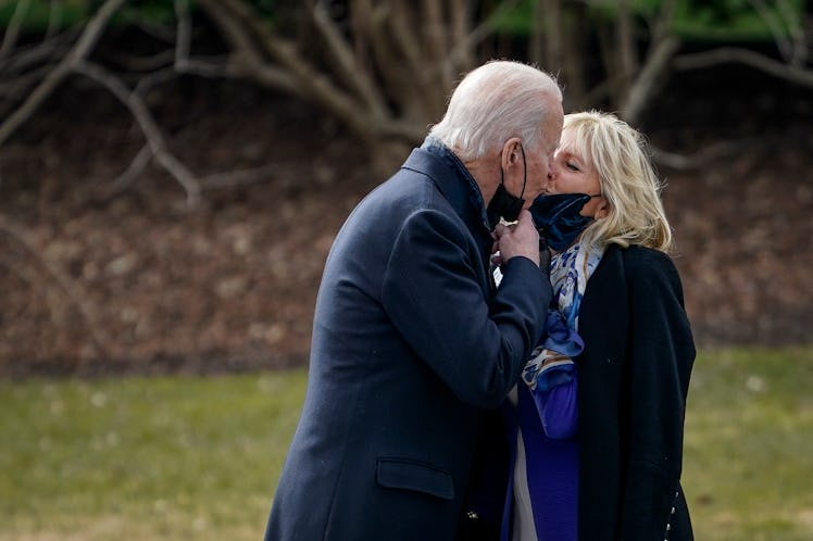 On Feb. 14, President Biden took to Twitter to share a simple but heartwarming message dedicated to his wife. Alongside a photo of him embracing Jill from behind, he wrote, "The love of my life and the life of my love. Happy Valentine’s Day, Jilly."