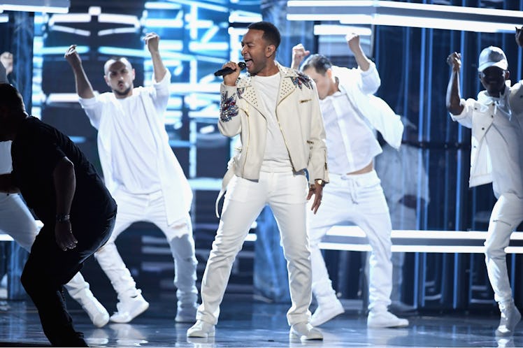But Legend's performance stood out among what was already an evening full of memorable numbers. Singing his new single "A Good Night," accompanied by an entourage of white-clad dancers, he won over the crowd with some feel-good vibes. As we've come to expect from the R&B singer, he got the audience rocking with his signature honey-smooth vocal magic and on-point dance moves. (And it didn't hurt that he was was rocking bright white and a cream-colored, embroidered, studded leather moto jacket that, frankly, deserves its own article.)