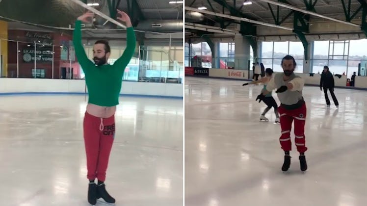 If you're only vaguely familiar with JVN from Netflix's hit show Queer Eye, then you might not know that the 31-year-old entertainer has pretty much always been obsessed with Olympic figure skating and the athletes who compete in the sport. Now that you know that little nugget of information, though, I think you can agree with me when I say that there is nothing more pure and amazing in this world than the fact that JVN is finally trying the sport out for himself. I, for one, am beyond happy for him.