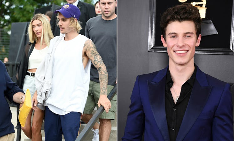 Newlyweds Justin Bieber and Hailey Baldwin are clearly still in love by the looks of the pop star's Instagram. This week alone, he's posted multiple photos of his wife that are seemingly candid paparazzi photos, and I can't blame him, because she is all kinds of gorgeous. But there's one star in particular who double-tapped one of Bieber's photos of Balwin, and it's making fans speculate if it was meant in a flirtatious way. That's right, I'm talking about singer Shawn Mendes, who has a history with Baldwin (sort of). But Justin Bieber's reaction to Shawn Mendes liking a photo of Hailey Baldwin is beyond chill, and proves that he's totally cool with the "Treat You Better" singer.