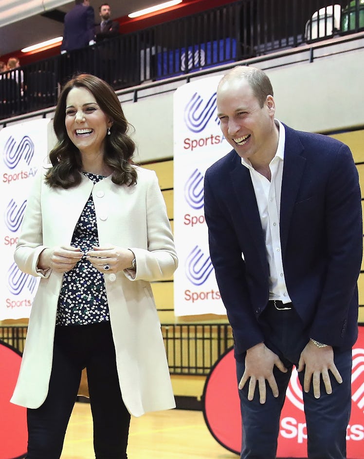 A couple who laughs together stays together, amirite? Well, according to Brown, that might actually be the case for William and Kate. Basically, the above picture of the two genuinely laughing at something together bodes well for the couple. "We see them laughing at the same time and completely focusing their energy and attention at their appearances on the same thing," she says. "They're a team to the core!"