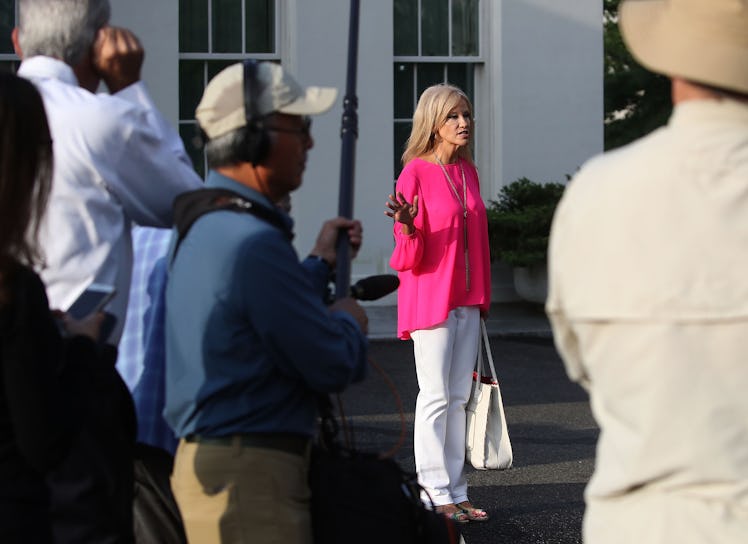 And like her boss, Conway's relationship with the press has escalated this week. According to an exchange between her and Washington Post reporter Ben Terris published Aug. 15, Conway in the interview apparently bad-mouthed her husband, George, who is known to be critical of Trump. Per the WaPo exchange, Conway tried to walk back her comments and claim that they were off the record, but the reporter didn't back down. (The transcript detailing the exchange was cringe-worthy.)