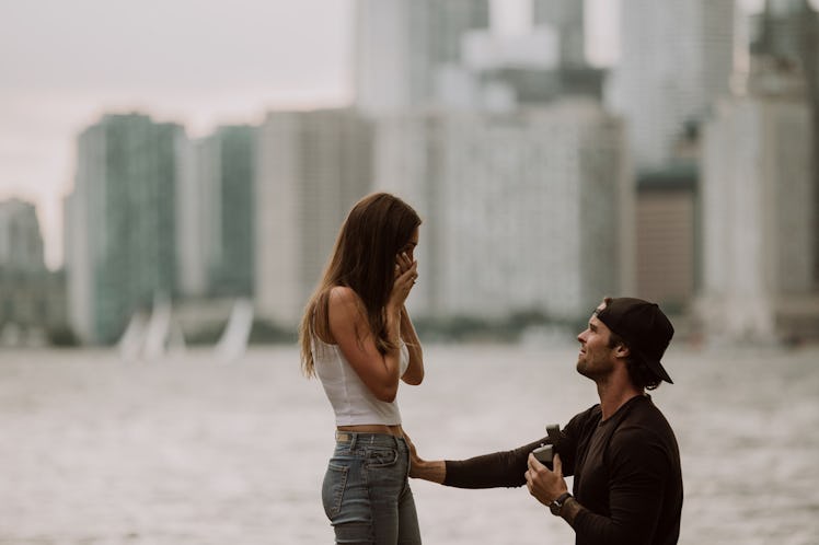 The next portion of the story is a photo of Wendt down on one knee. Loch looks visibly stunned, with one hand over her mouth. Then, Wendt narrates a short video showing off the breathtaking view from the island and thanking photographers Ally + Nicholas, who were hiding in the bushes to capture the whole shebang. The IG story ends with an adorable photo of the newly engaged couple.