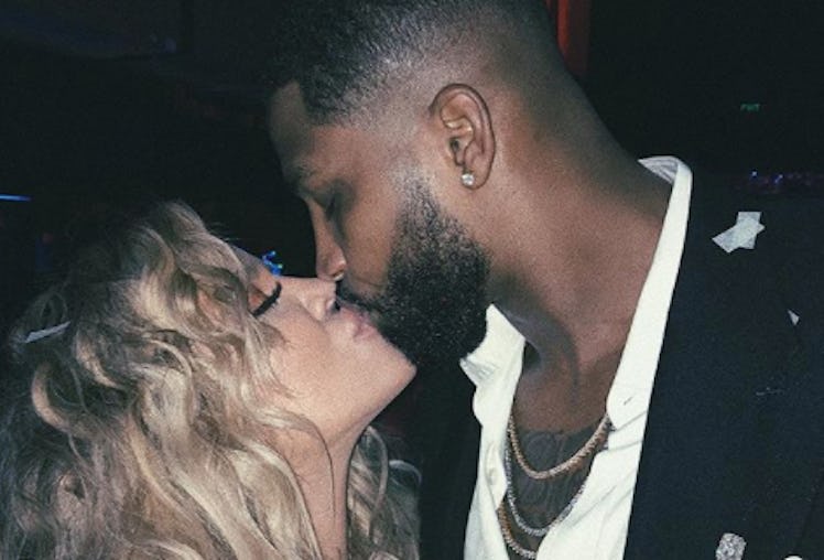 Khloé Kardashian and Tristan Thompson are adorable as hell, OK? And they proved that on Khloé's Snapchat story on New Year's Eve. Khloé Kardashian and Tristan Thompson's New Year's photos prove these two are in complete bliss with each other, and I'm honestly giddy over them. The reality star posted a bunch of photos and videos on New Year's Eve, mostly of Thompson dancing and then capped off with a shot of their ~New Year's kiss~. It doesn't look like they spent the holiday at Kim and Kanye's house, however. It looks like they spent the holiday in Cleveland, where they're basically living together while Thompson is still in his #sportsball season.