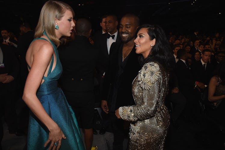 Before we dive into the Reputation shade, it's helpful to get a brief refresher on the Taylor vs. Kim feud. As with many things, it all started with Kanye West. Back in 2009, West stormed the stage at the MTV Video Music Awards and interrupted Swift as she was giving her Best Female Video acceptance speech, grabbing the microphone to say that Beyoncé deserved to win the award for her "Single Ladies" video. This kicked off a highly publicized feud between the two, which is still very much thriving and apparent in Reputation as well.