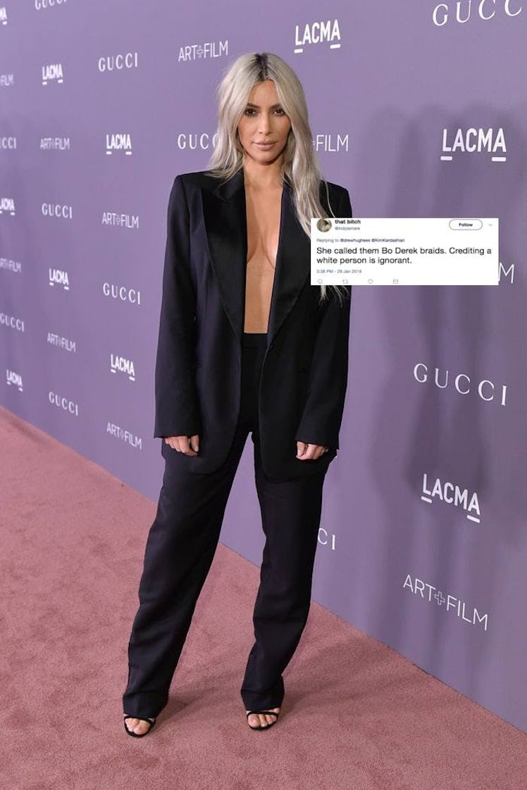 "It looks like she's referencing Bo Derek. But Bo having these braids back in the day was also appropriation," wrote one user, bringing up an important point. I totally get that Kardashian was probably referencing Derek, but even Derek had a black stylist on set that braided her hair that day. Surprisingly, another thing that annoys me in moments like these are reactions that slam the style. I think it's counterproductive to make comments that the braids don't look good. I mean that braiding pattern is immaculate.