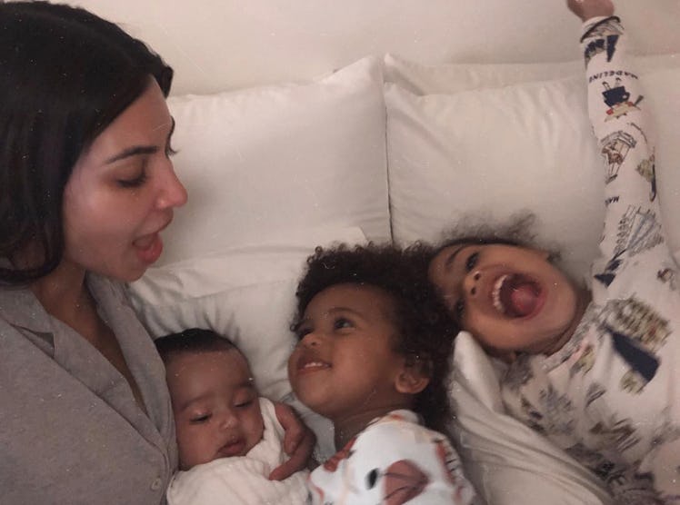 Every year I look forward to decking the halls, wrapping presents, drinking mulled wine, and watching whatever the Kardashians are up to for Christmas go down on social media. This year, they did not disappoint. While Kim Kardashian and Kanye West threw one of the most magical Christmas Eve parties yet (more on that later), the real Christmas miracle is how quickly their children are growing up. Seriously. Kim Kardashian's family Christmas photo is proof that Chicago, Saint, and North are growing up so much faster than fans probably realize. Luckily, Kim is documenting it all.