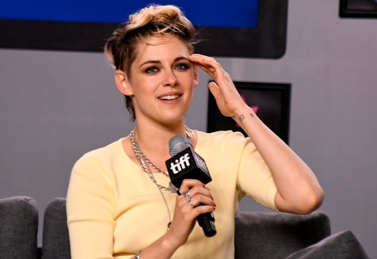 'Twas just last week I was raving about Kristen Stewart's edgy new haircut and blonde strands, and yet here we are again, reunited once more to rave about yet another big hair change. If you haven't seen Kristen Stewart's pink hair, prepare to swoon like the Hot Topic-loving, emo tween you once were, because this look is everything I ever wanted in my youth and so much more — and on Stewart, it actually looks bomb, whereas it would've just got me suspended from high school. Stewart recently upped the ante on her already-very-cool cropped cut by dying the blonde bits a shocking pink, and it's safe to say Bella from Twilight is shaking, because she could never. Don't worry; that will be the only Twilight reference in this piece, I promise.