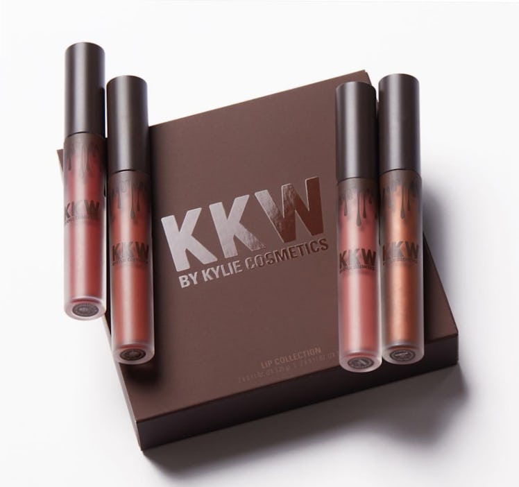 The kit is a warmer addition to the nude lipstick bundle the sisters dropped last spring. The KKW x Kylie Cosmetics Round 2 boasts deep reds and sultry metallics.