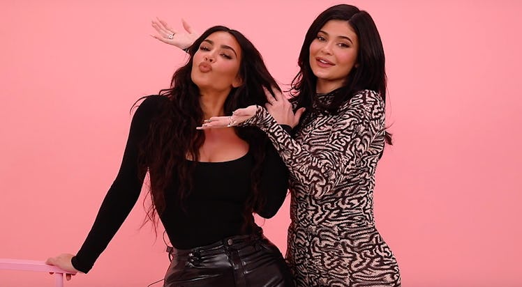 In what I'm referring to as the YouTube video I never knew I wanted but absolutely needed, Kylie Jenner did Kim Kardashian's makeup, and the whole thing was a very cute sisterly-bonding experience. Jenner isn't a full-on beauty YouTuber just yet, but she does dabble in fun vlogs and sit-down videos filmed with her sisters, so seeing her older sis, Kim, on her signature pink background is ~very~ exciting. The two are both major forces in the beauty world, and while I expected the video to be a get-ready-with-me with each using her own namesake brand, it turned out Jenner decided to play makeup artist and glam Kardashian instead.