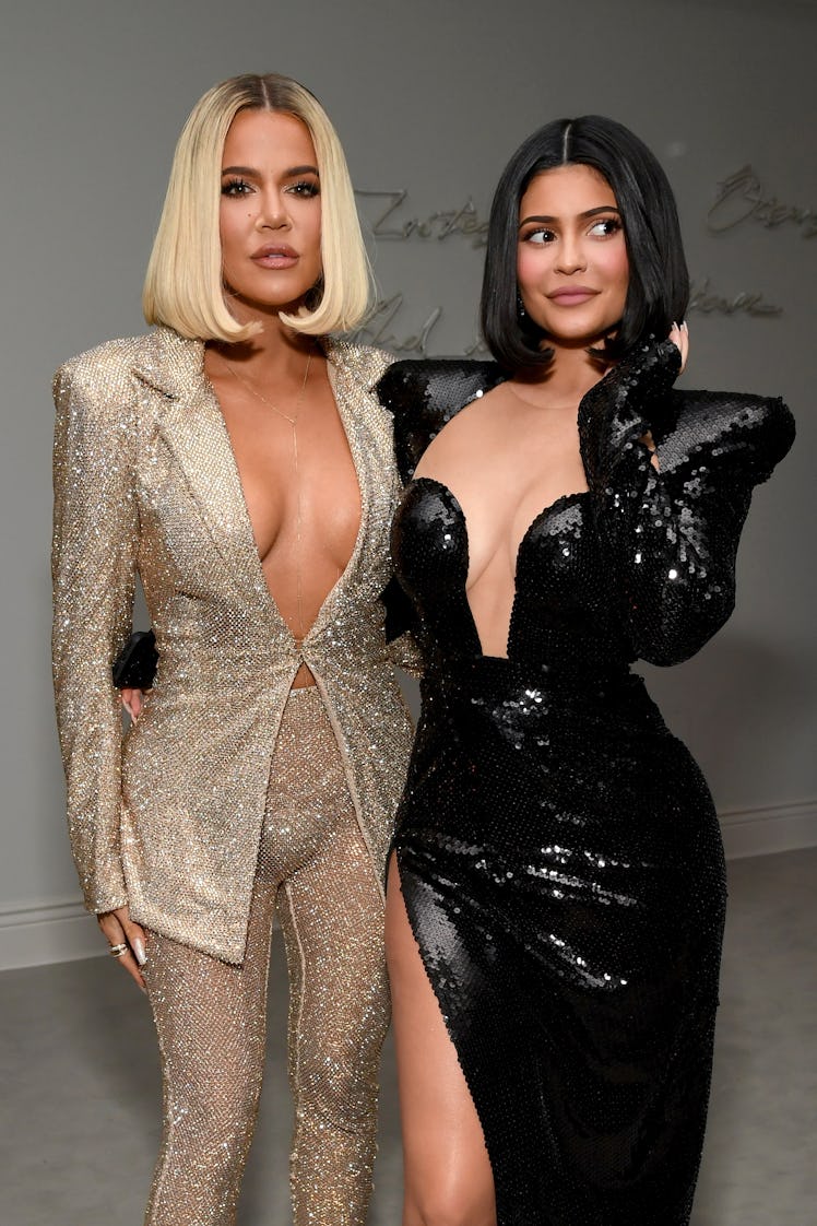 I imagine there's no group chat quite as constantly-buzzing as that of the Kardashian-Jenner sisters before a big night out. From discussing their gowns to their glam, it's no secret the girls trade ideas with one another, and I have to wonder if Kylie Jenner and Khloé Kardashian's matching bobs were an intentional act of twinning. The sisters sported the exact same hairstyle to Diddy's 50th birthday extravaganza with coordinating glitzy ensembles to boot, and as a '90s baby, I half-expected them to caption the photos, "A brunette and a blonde with an inseparable bond," as we all did back in the MySpace days.