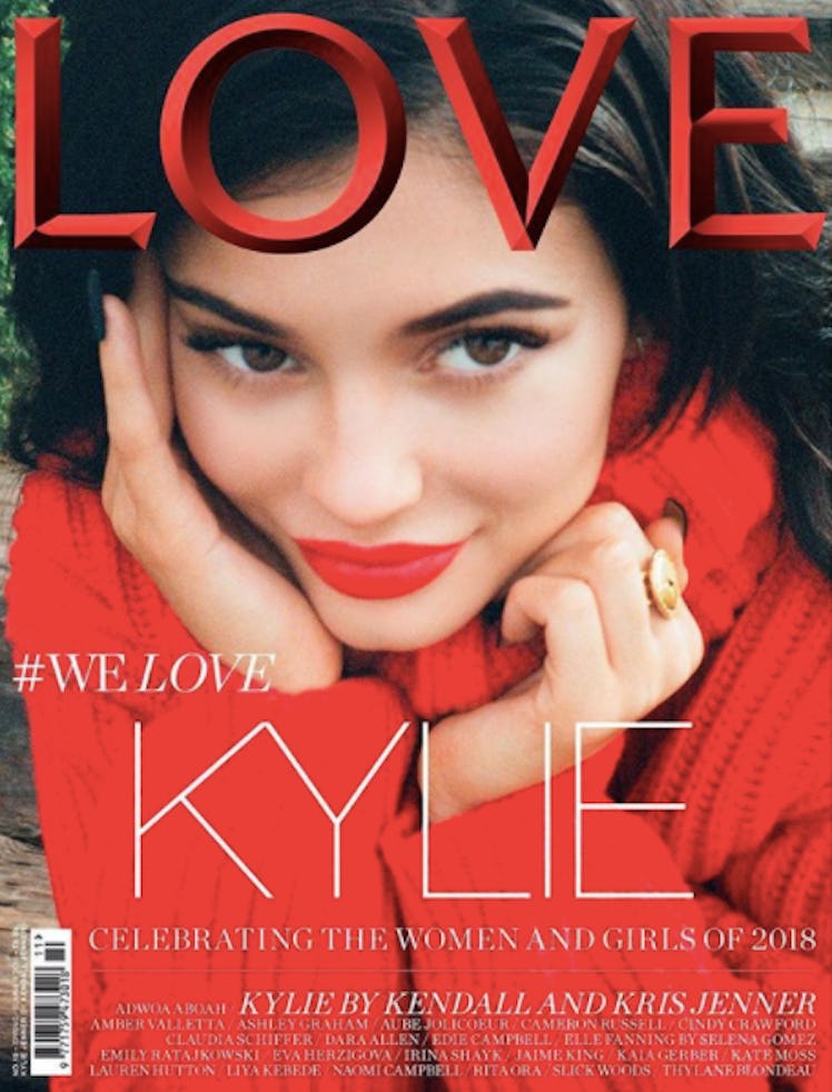 If you've been waiting for a pregnancy reveal today, don't get your hopes up. Instead of posting a baby bump photo on Instagram, Kylie Jenner posted her LOVE magazine cover. The image was shot by Kendall Jenner and serves as the cover for the 19th issue of the magazine.