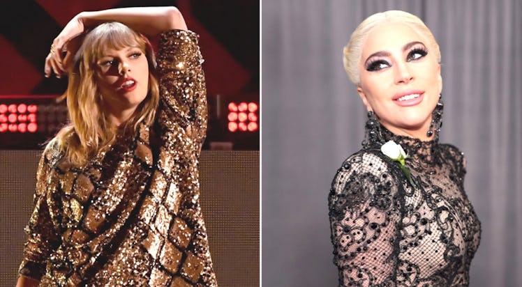Pop music fans, prepare to be shook. The Grammy red carpet arrivals kicked off with a huge bang on Sunday night. Lady Gaga was one of the first stars to arrive, and she dropped a major hint about who she may be working with next: Taylor Swift! That's right — viewers picked up on one detail in Gaga's outfit that seems to suggest that a Lady Gaga and Taylor Swift collaboration could be on its way.