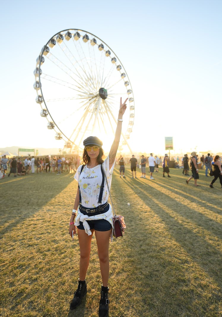 Still haven't totally figured out your outfit? Don't stress. There are still so many options out there, including this comfortable and cute romper. A look like this is honestly so ideal because you don't have to worry about adjusting several pieces. Put it on in the morning and start making memories right away. The pressure of the festival runway can so easily get to you, but you'll surely find exactly what you're looking for in time. The key is just to own it. And when in doubt, a graphic tee is always a good idea, too.