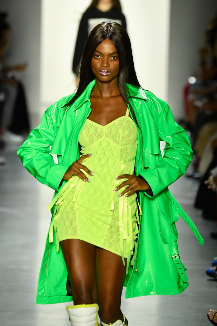 Lime green started popping up earlier this summer on a handful of the coolest tastemakers around and from there, its popularity grew. Kim Kardashian stepped out with slime green hair while in Miami and not long after wore the color again, this time in dress form for 2 Chainz' wedding. SZA, too, went for neon strands and twin DJs and influencers Simi and Haze have rocked the blinding hue too many times to count. Naturally, fashion did its thing and took note of the growing trend so that by the time Spring/ Summer 2019 Fashion Month came around in December, catwalks was crawling with slime. Designers including Jeremy Scott, Prabal Gurung, Cushnie et Ochs, Natasha Zinko, Emporio Armani and more all championed the color.