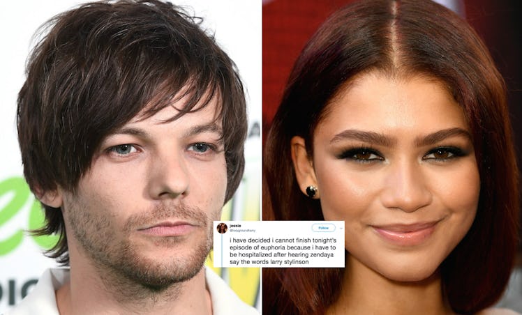 Zendaya's new HBO show, Euphoria, is tussling some feathers. The show is basically an R-rated Riverdale, filled with drugs, sex, and heavy violence in the lives of high schoolers (minus the Gargoyle King), and it's already got tons of people hooked only three episodes into its first season. One person who might not be a fan after Season 1, Episode 3, however, is Louis Tomlinson. Have y'all ever heard of the Larry Stylinson theory? It's this mega-popular One Direction fan fiction theory arguing that Tomlinson and Harry Styles were secret lovers during their 1D days. That theory is talked about in Euphoria Season 1, Episode 3, and Louis Tomlinson's reaction to the Euphoria Larry Stylinson scene just made things awkward.