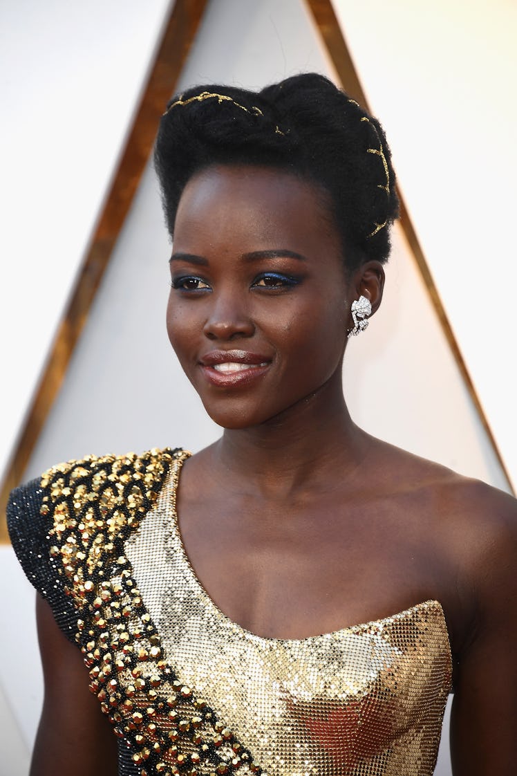 Nyong'o graced us all at the 2018 Academy Awards with an absolutely stunning custom atelier Versace gown. The actress seriously looks like a Wakandan goddess, straight out of Black Panther, or like a more beautiful version of the Oscar trophy itself.