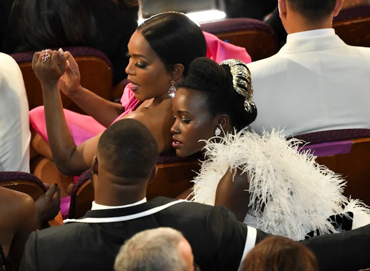 Black Panther, in which Nyong'o stars as Nakia, is nominated for a whopping seven awards tonight so it's a monumental event for the entire cast and crew. The trailblazing film is up for Best Original Score, Best Original Song, Best Sound Editing, Best Sound Mixing, Best Production Design, Best Costume Design, and, perhaps most excitingly, Best Picture. "Seven #OscarNoms for #BlackPanther, including best picture!! This is our reaction the first time we saw footage from the film and we're feeling this way all over again today! Thank you @TheAcademy! #WakandaForever#Oscars," wrote Nyong’o in a post on Twitter after the nominations were announced, clearly ecstatic about Black Panther's recognition.