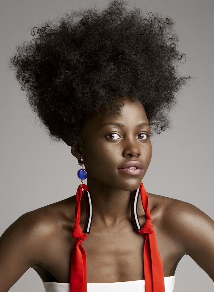 Nyong'o's second look was a more voluminous natural hair style. “Lupita and I wanted to show that coil-y or kinky hair has many strengths and can be worn in lots of different ways, celebrating its beauty and versatility,” François says about the look, “Loving your true texture is important.” Nyong'o agrees and describes how she views her own hair: