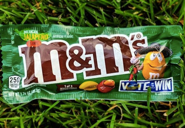 Apparently, the Instagram user CandyHunting agrees. The account posted a photo of the Mexican Jalapeño Peanuts bag on Instagram, and wrote, "SAY WHAT?! The next M&M's vote is for "Internationally Inspired Flavors." If that winds up being the case, I'm going to have to try these babies ASAP.