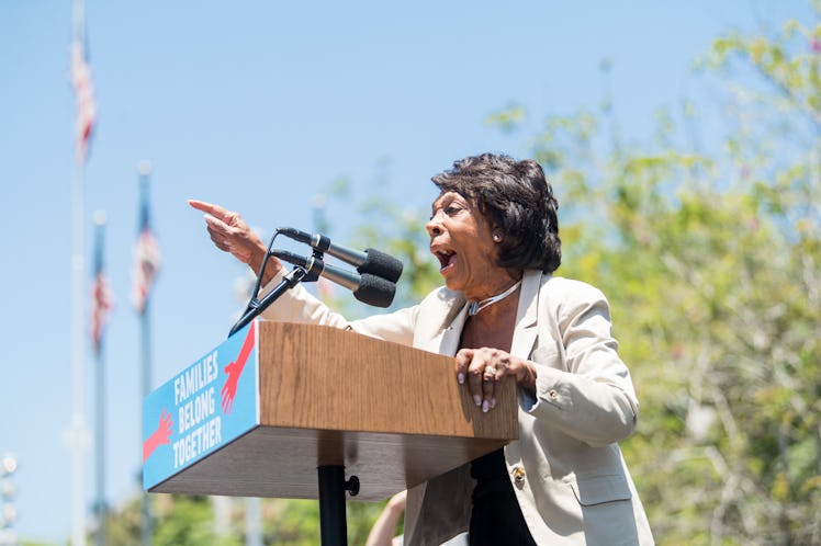 The nation's top Democrats want you to be courteous and polite in the face of bigotry. Specifically, House Minority Leader Nancy Pelosi and Sen. Chuck Schumer called on Rep. Maxine Waters on June 25 to set a better example with her words (Waters had urged people to continue to publicly shame members of the Trump administration). The 79-year-old lawmaker addressed her beef with fellow Democrats at the Families Belong Together March on Saturday, June 30, where she also addressed calls from her critics for inciting violence against her. Maxine Waters' response to Pelosi and Schumer's comments is a sharp rebuke to calls for "civility," and it's giving me life.