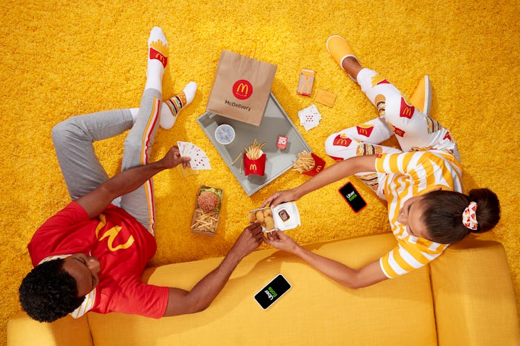McDonald's is partnering with Uber Eats for McDelivery Night In on Sept. 19 to bring delicious menu items to customers during their night in. For the special annual event, the fast food company is bringing back a line of apparel and accessories that's designed just for lounging around the house. The cozy items include Big Mac & Fry socks, slippers, scrunchies and more. If you make a $10 minimum purchase with McDelivery with Uber Eats on the special night, you'll receive a free limited-edition item from the McDelivery Night In line while supplies last, according to the brand. It's just like getting a free toy every time you purchase a Happy Meal, but with a comfy AF twist. It all starts at 5 p.m. local time on Sept. 19, while supplies last.