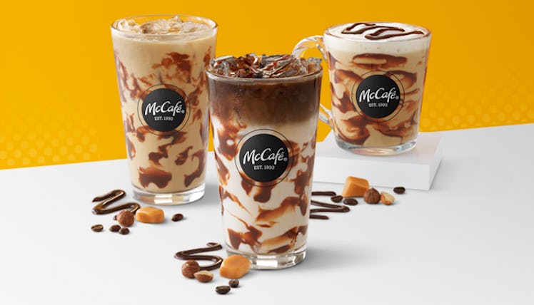 One of my favorite things about McDonald's is without a doubt their McCafé menu. To be completely honest, I think it's underrated. Not only are McCafé coffees strong AF, but they're also pretty dang cheap. And now, they're sweeter than ever. On Wednesday, March 21, the fast-food hot spot unveiled three new coffee beverages — and each one sounds like it could be double as a dessert. That's right: McDonald's new Turtle drinks are here, and they'll totally remind you of those caramel-filled chocolate candies you know and love.