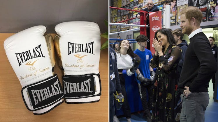 Meghan Markle gets a lot of credit for transforming Prince Harry into the strapping, health-conscious father-to-be you see today, but it looks like the Duke of Sussex has been rubbing off on his wife, too. See, before his fairytale romance with Markle began, the Prince fell in love with boxing as a way of coping with built-up emotions he’d been harboring since the death of his mother, Princess Diana. Ever since, Harry has been an advocate for using physical exercise to strengthen one’s mental health, and by the looks of Meghan Markle and Prince Harry’s personalized boxing gloves from Empire Fighting Chance, a UK boxing club that uses fitness to help young people work through their own mental health struggles, the Duchess now has incentive to hop into the ring herself.