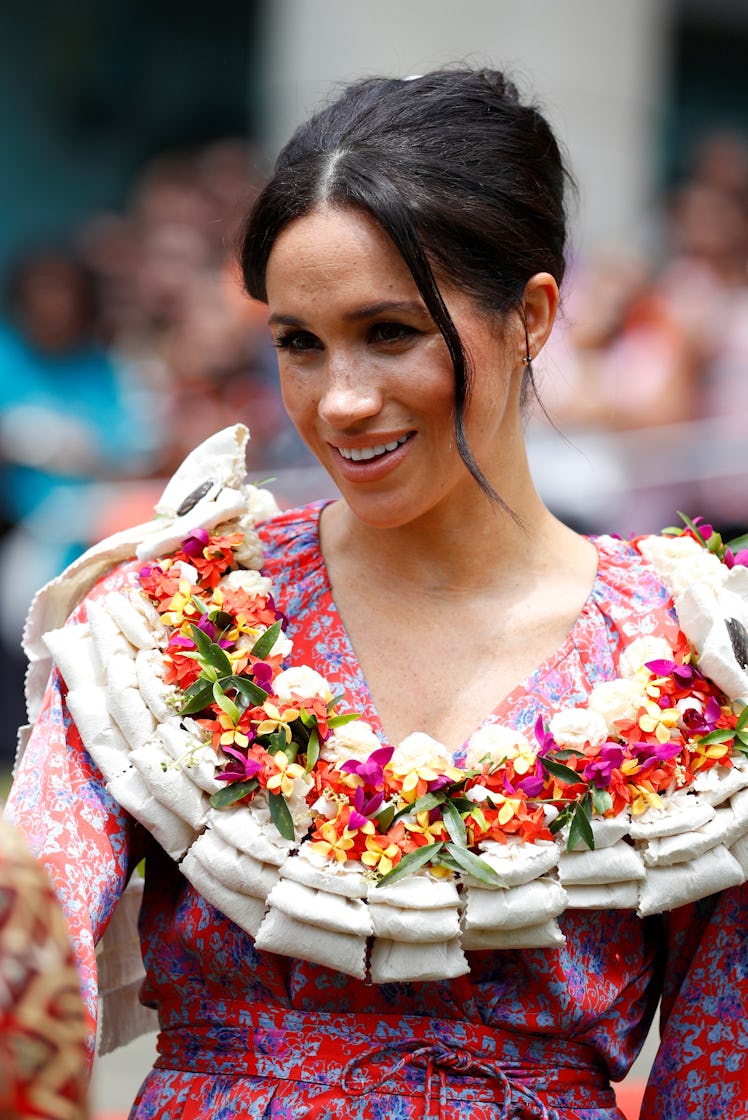 The Duchess of Sussex delivered her speech at the University of the South Pacific in Suva, Fiji, on Wednesday, Oct. 24. She approached a podium in front of a crowded room of students and staff where she began her speech by offering the Fijian greeting, "Bula Vinaka." From there, she dove right into the benefits of attending university, reflecting on her time as a student at Northwestern University.