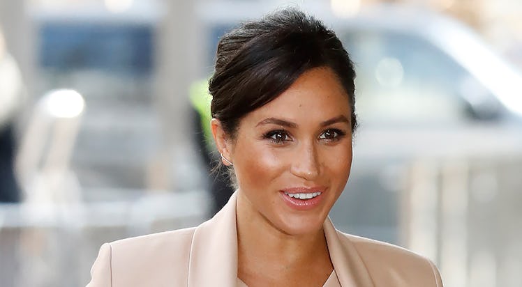 TBH, Markle always gives me warm-weather vibes thanks to her consistently glowy, well-bronzed complexion. She has not once in her life ever looked unblended, pale or dry, of that I'm sure, and she honestly always appears as if she's just returned from a fabulous tropical vacay. In my humble opinion, the Markle Glow is as enviable as the iconic Markle Messy Bun, and when you add the extra oomph of a pregnancy glow, you've got dewy skin goals to the max. Still, her look on a visit to London's National Theatre was particularly summery, as she complimented her glowing complexion with a head-to-toe pale pink look.