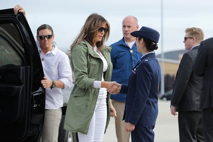 But the rain was far from the only thing that put a damper on Trump's trip — it was mainly the Zara army jacket she opted to wear to a detention center on June 21, which had the words "I really don't care, do u?" scribbled across the back. Her decision to wear the jacket couldn't have come at a worse time, TBH, as some of the children who were in the center she visited had been separated from their parents under President Donald Trump's "zero tolerance" policy. Under the regulation, people who cross the border without documentation will be detained and prosecuted. Additionally, adults who cross the border with a child risk being separated from them, as the children cannot go into jails and through the criminal court system with their guardians.