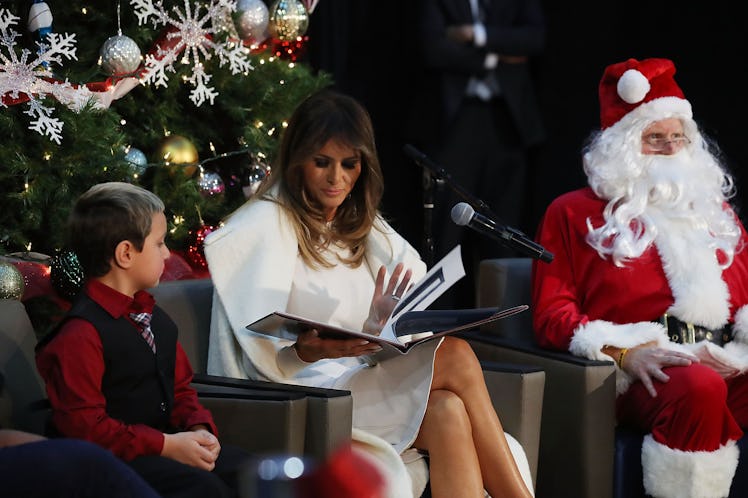 During a Dec. 7 visit to the Children's National Hospital in Washington, D.C., the first lady met with patients and their families, before taking questions in the main atrium, per a White House release. A video showed the first lady sitting in front of several Christmas trees with a Santa Claus impersonator while she read The Polar Express and then took questions. Children asked her everything from what her favorite Christmas food is ("healthy food") to her favorite Christmas song ("O Holy Night").