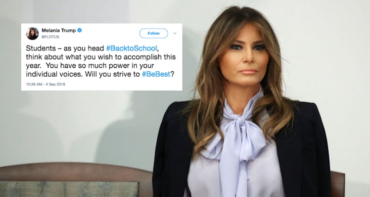 On Tuesday, Sept. 4, first lady Melania Trump sent out a tweet aimed at students heading back to school that read, "Students – as you head #BacktoSchool, think about what you wish to accomplish this year. You have so much power in your individual voices. Will you strive to #BeBest?" While many might appreciate the sentiment behind what Trump is trying to propose here, many people found it hard to take her seriously, given the irony involved in her tweet.