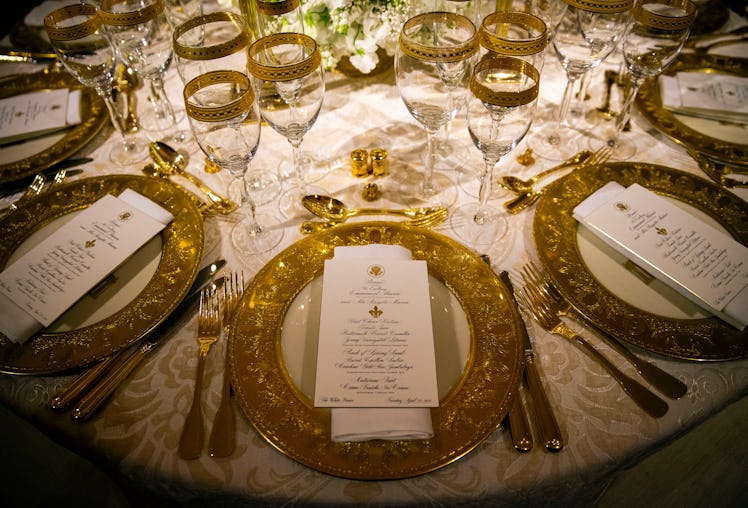 The Trumps are, in classic style, breaking with tradition set by their predecessors this year. Apart from the coursing, the guest list is substantially different. Whereas the Obamas reportedly invited over 300 people to their first state dinner in 2009, taking place in an elegant outdoor setup, Politico reports that this year's affair is open to just 150 and will occupy the State Dining Room. And though past presidents historically invited the press and opposing-party members of Congress, Trump has notably left them both off the list.
