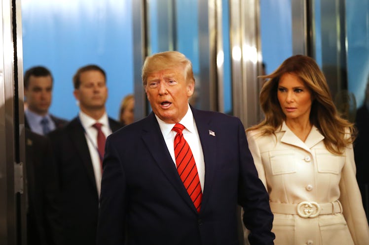 On Tuesday, Sept. 24, the first lady of the United States appeared to sidestep the latest controversy to hit the Trump administration by sharing several black-and-white photos of her and her husband's appearance at the United Nations General Assembly. The president had attended the event at the U.N. headquarters in New York City earlier on Sept. 24, where he gave a speech to the assembled national leaders, promoting his nationalist philosophy. The first lady's posts celebrated the event with minimal commentary. "@POTUS & @FLOTUS #UNGA2019," she captioned the collage, which shows two photos of her at the event with Trump as well as an image of her in the crowd watching him speak. Her post made no mention of the biggest news story in Washington: Speaker of the House Nancy Pelosi's announcement of an official impeachment inquiry into President Donald Trump.
