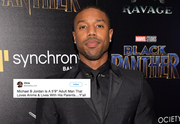 If y'all haven't went out and seen the movie Black Panther yet, then you are truly missing out. It was a great movie (breaking box office records and all), but the real reason you need to see it is because Michael B. Jordan is in it and GOOD LORD, that man is fine. One could say that he's having a bit of a moment — a very, very, well-deserved moment, I might add. Unfortunately, some people like to try and bring down a bright, shining star, but guess what? Our man is not going to let that happen. Someone on Twitter decided to bring some jokes to the table aimed at the Black Panther star — namely the fact that he loves anime and lives with his parents — but Michael B. Jordan's clapback tweet is pure FIRE, and clearly, the Twitter troll got nothin' but roasted in the end.