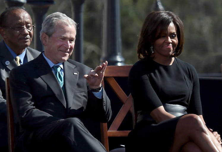 Michelle Obama & George W. Bush Shared A Sweet Moment At George H.W. Bush's Funeral