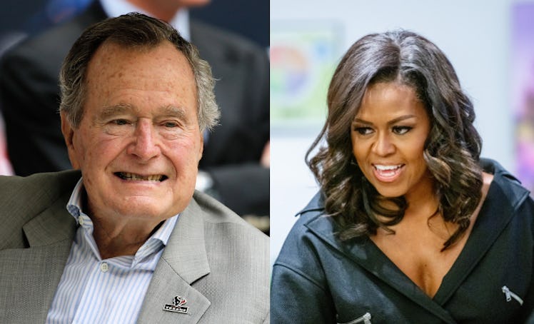 In the politically-divided time that is 2018, it's now even more unusual than ever to hold friendships across party lines. However, that hasn't deterred former first lady Michelle Obama from forging an unlikely camaraderie with the Bush family, and she has even referred to her husband's predecessor, President George W. Bush, as her "partner in crime." Michelle Obama postponing book tour dates for George H.W. Bush's funeral is a fitting tribute to her esteem for the man, despite their political differences, and her heartfelt Twitter announcement is the show of bipartisan respect that we're all craving in this day and age.