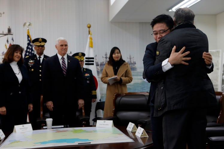 At the PyeongChang Olympics opening ceremony, Vice President Mike Pence was photographed just feet away from Kim Yo Jong, the younger sister of North Korean dictator Kim Jong-un. Just hours before, however, the vice president was in a totally different position. Ahead of the opening ceremony, Mike Pence and Fred Warmier shared an emotional moment with North Korean defector, Ji Seong-ho, who has told stories of being tortured by the Kim regime.
