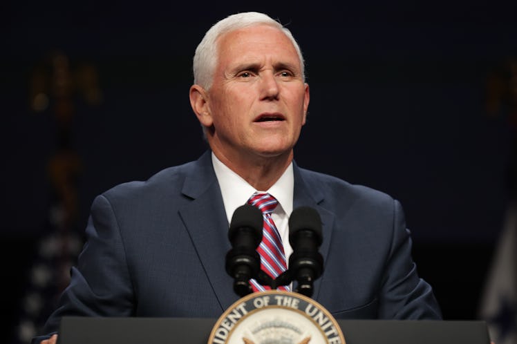 After his visit to a detention facility near McAllen, Texas, Pence commented, per The Hill, that he was "not surprised" by the conditions and added, "I knew we'd see a system that was overwhelmed." According to Vox, Pence also said the conditions were "tough stuff." The McAllen facility houses around 400 Central American people and was reportedly filled with a foul odor and had extremely high temperatures, with some migrants saying they didn't have access to showers, toothbrushes, food, or bedding. Elite Daily previously reached out to the Department of Homeland Security (DHS) and Customs and Border Protection (CBP) about the reported conditions in detention centers but did not immediately hear back, but they did put out a statement on July 1, stating most Border Patrol agents care for migrants "humanely and compassionately."