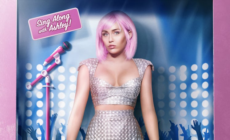 In the upcoming episode entitled "Rachel, Jack and Ashley Too," Miley Cyrus will play a purple-haired pop star named Ashley O, who appears to have the perfect life but is secretly struggling with all the pressures of fame. The character of a wig-wearing pop star juggling her dual identities should be very familiar for Miley Cyrus fans, but since this is Black Mirror, we know that Ashley O's story will be a whole lot darker than anything Hannah Montana had to deal with. Cyrus told Radio 1 Newsbeat in a recent interview that the episode tells the story of women who work in the music industry, particular with pop music careers: