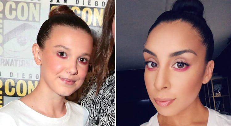 I follow a bunch of celebrities on Instagram — it's my job. I need to stay up to date on their latest fashion and beauty looks to share with all of you. But for the most part, celebrities go for fresh, dewy, gorgeous makeup looks, which sounds great, but where's the creativity? I live for a good glitter moment, a statement lip, or an over-the-top eyeshadow look, but I don't come across them too often. Thankfully, Millie Bobby Brown's upside down eyeshadow look popped up on my feed, and it's giving me so much life right now. So, I did what any other beauty junkie would do: I copied the look.